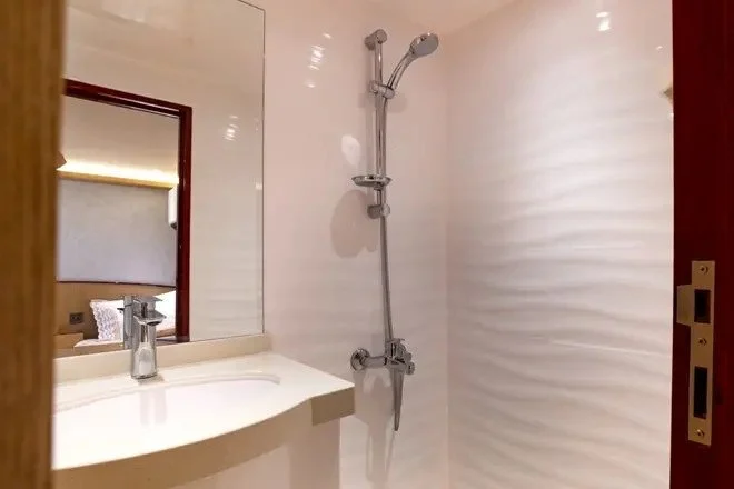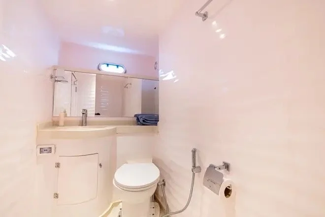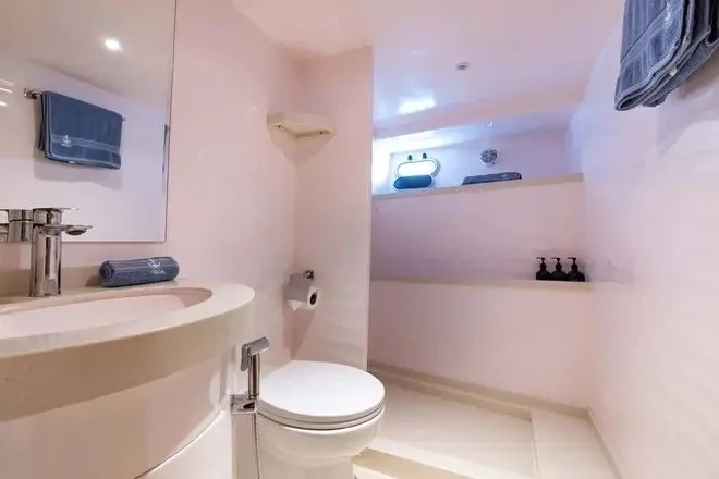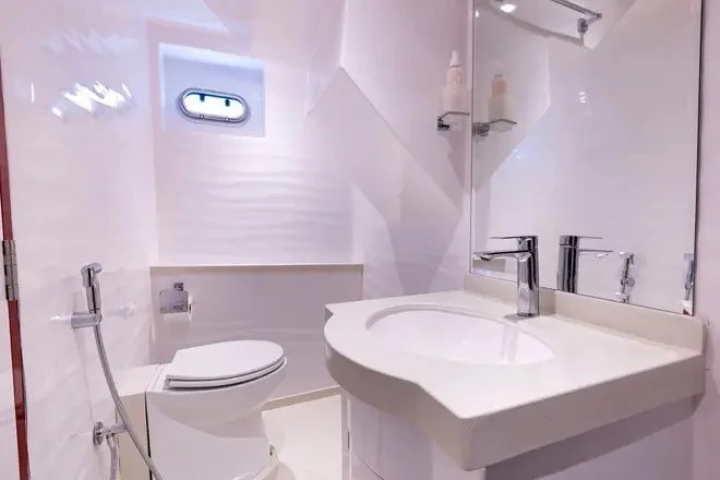Bathroom with all services and washing utensils in a Yacht on the master room